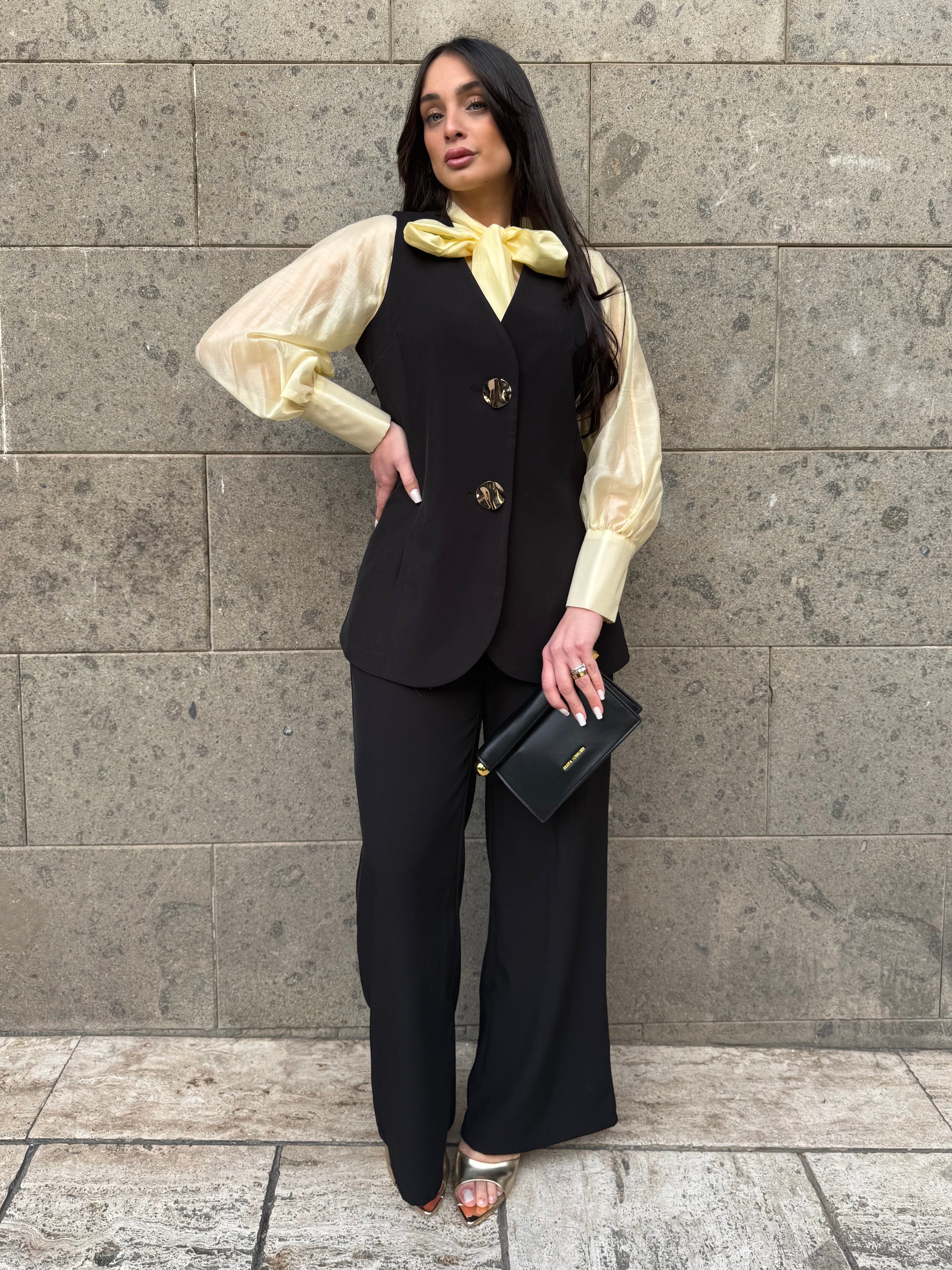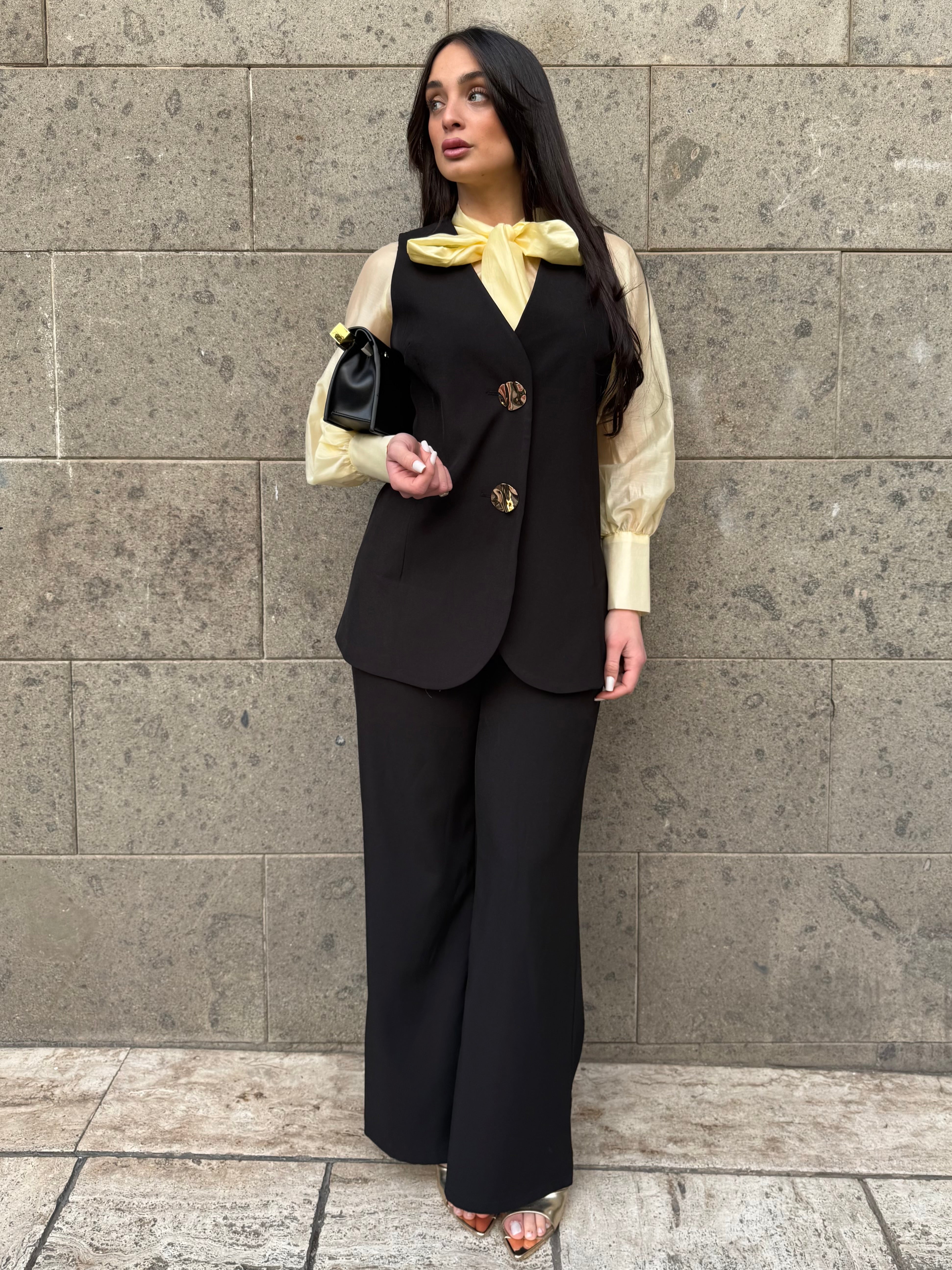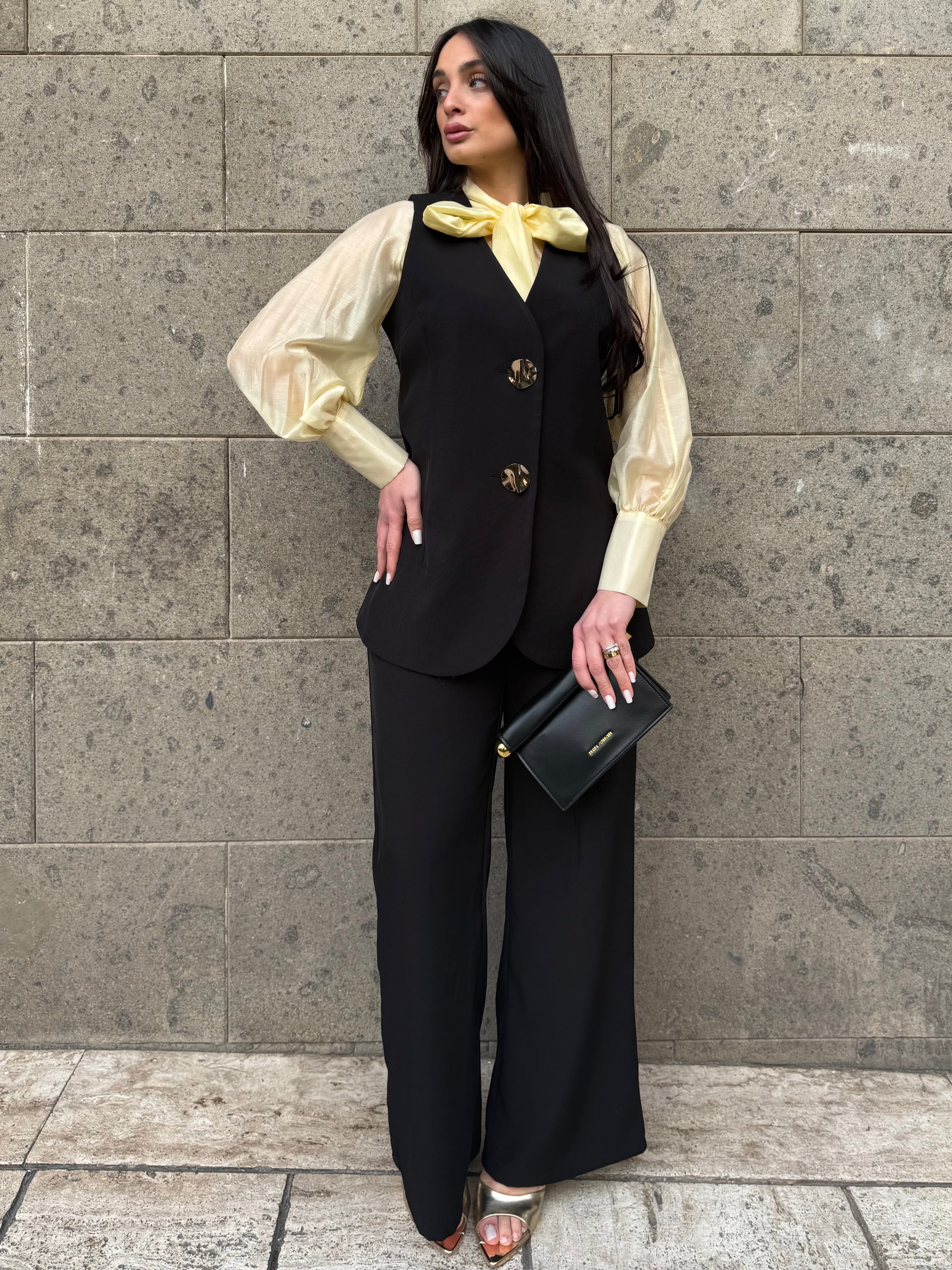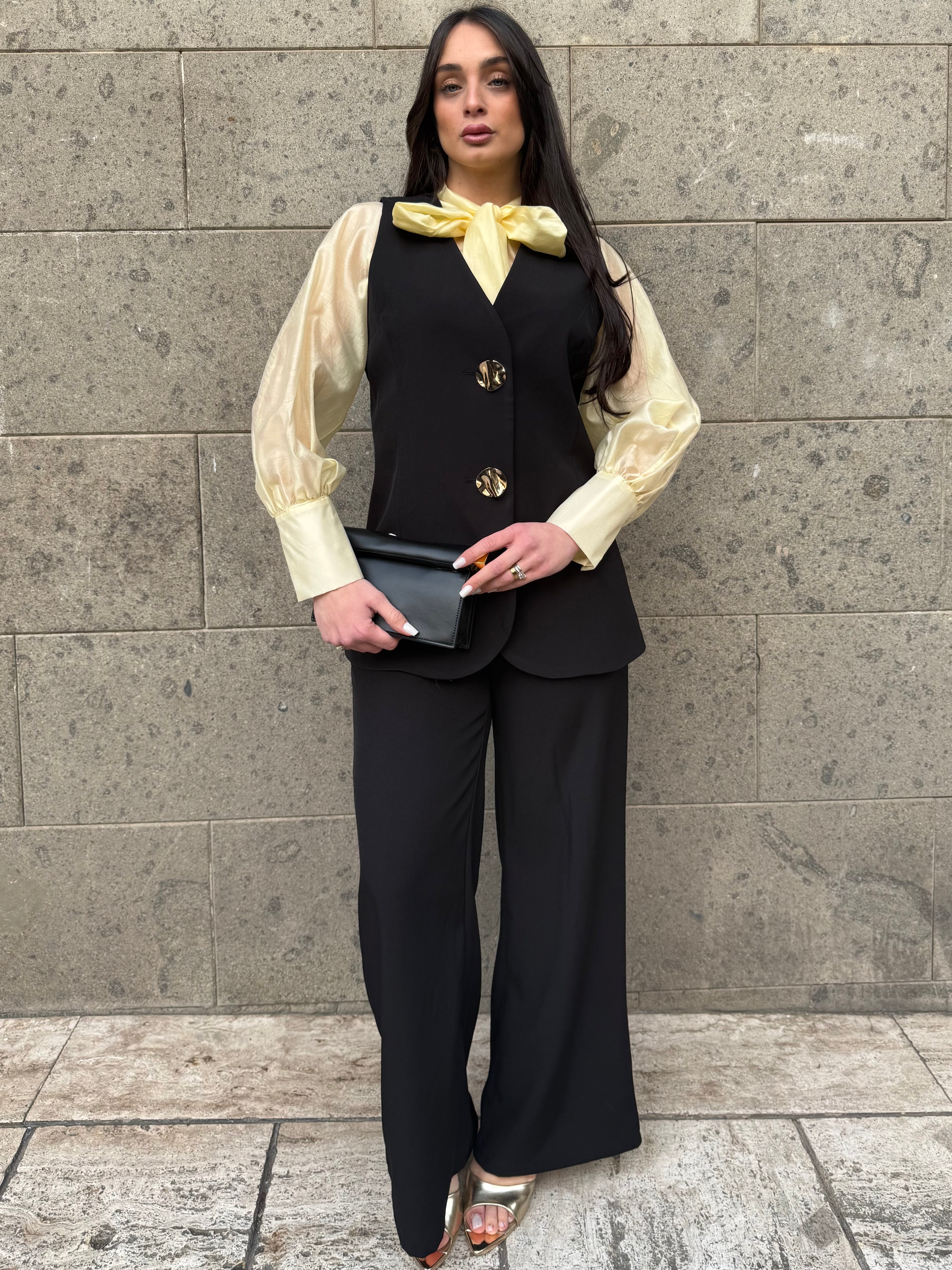 • Coordinato gilet lungo e pantaloni palazzo