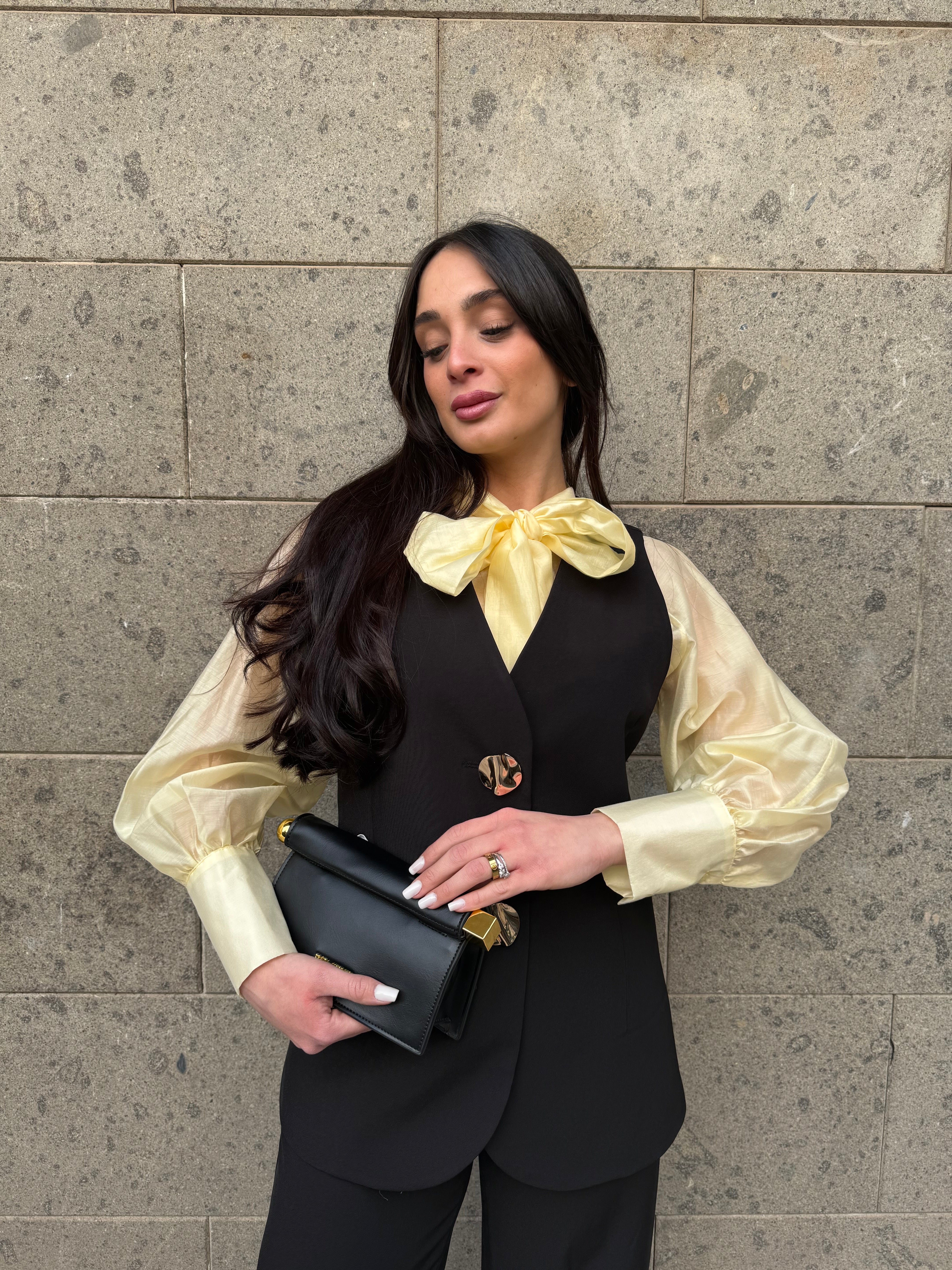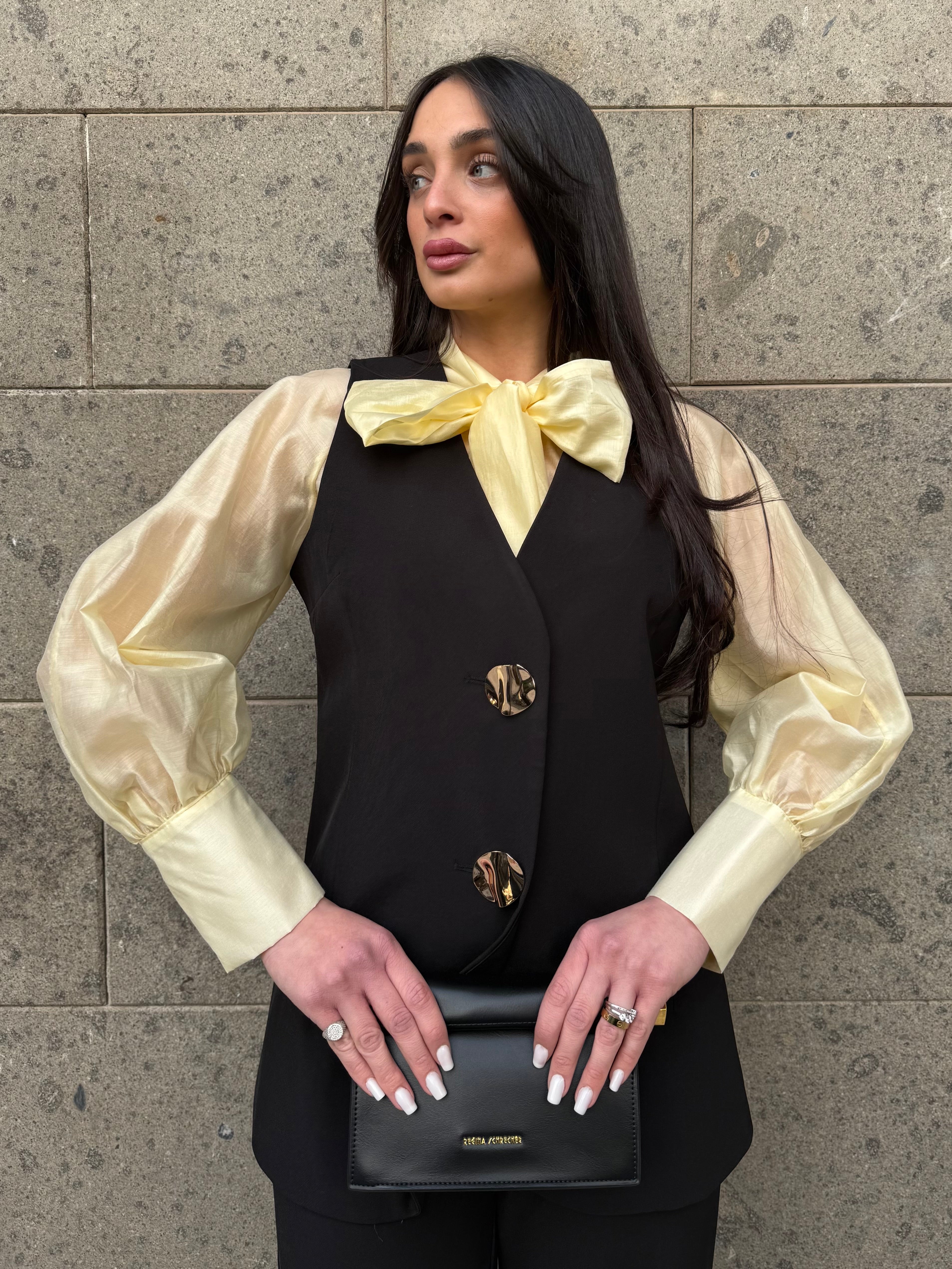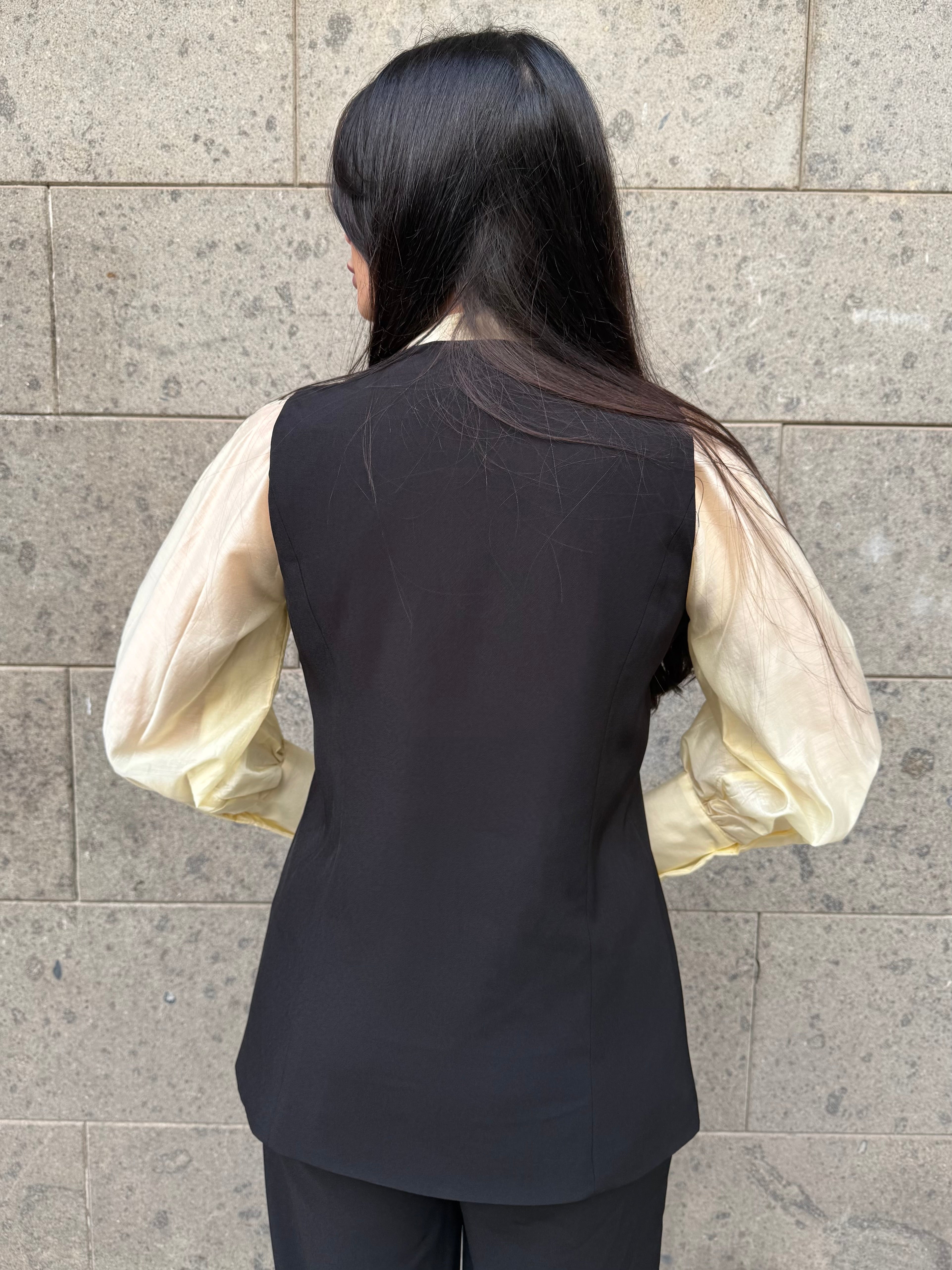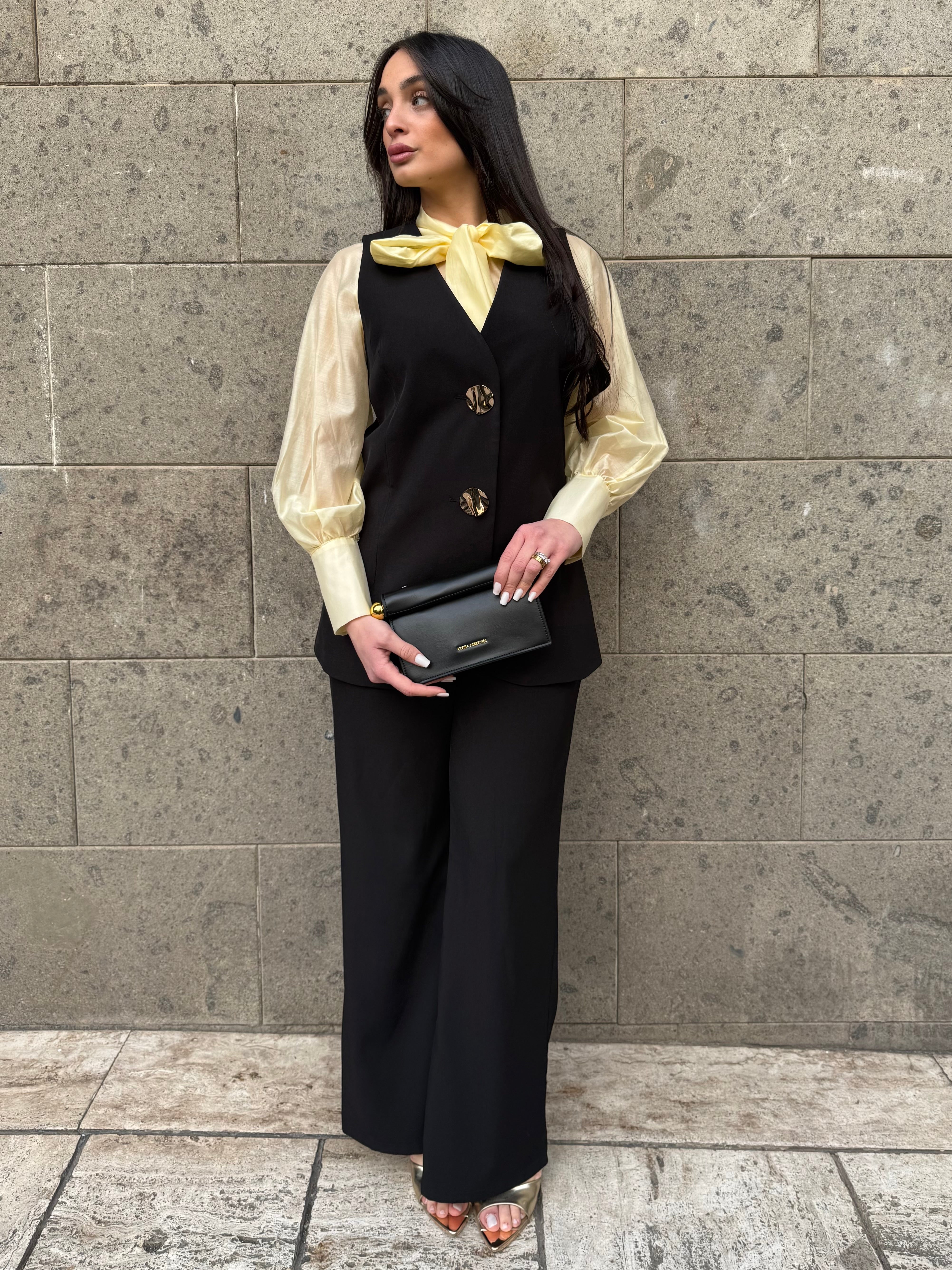 • Coordinato gilet lungo e pantaloni palazzo