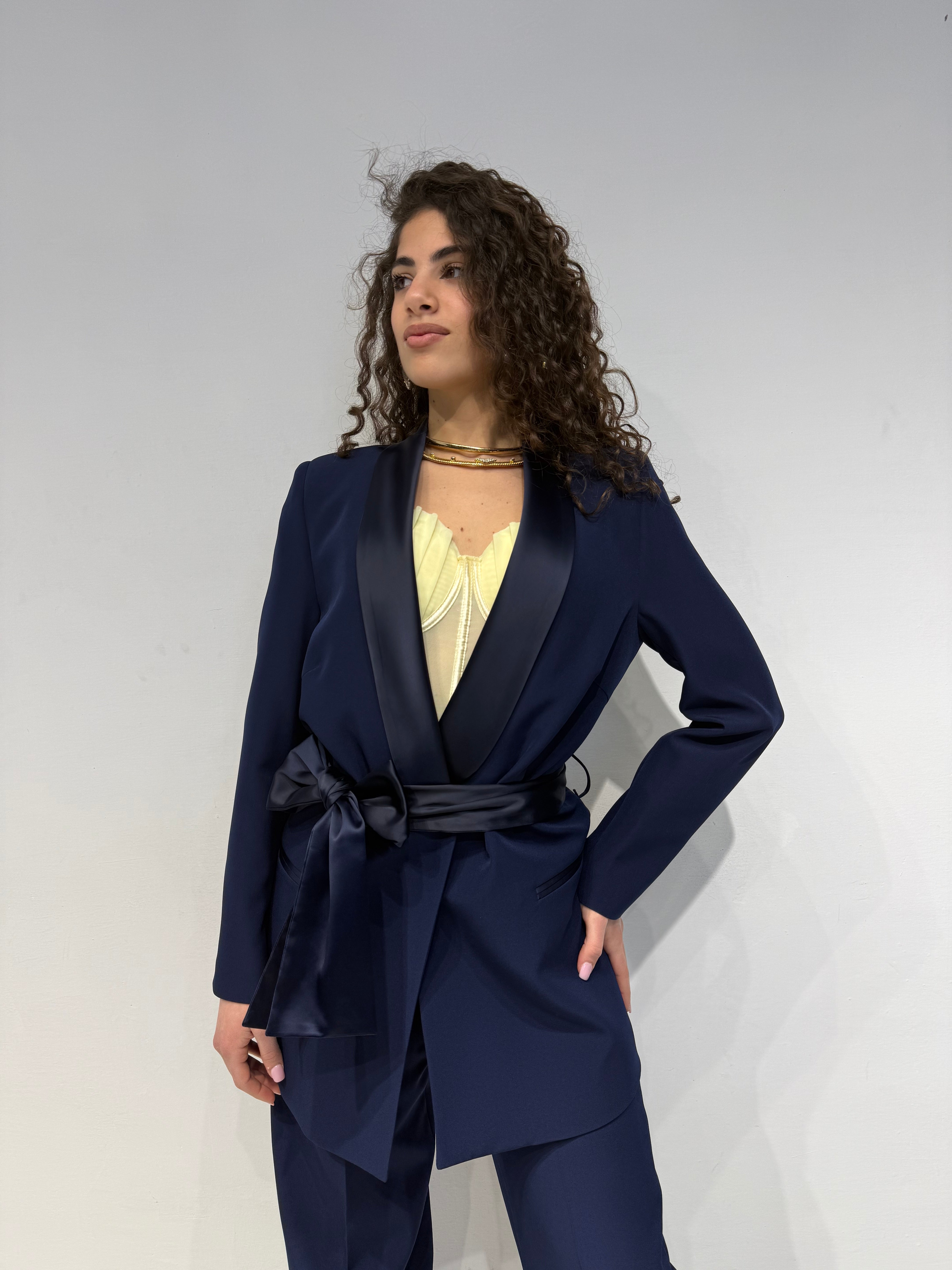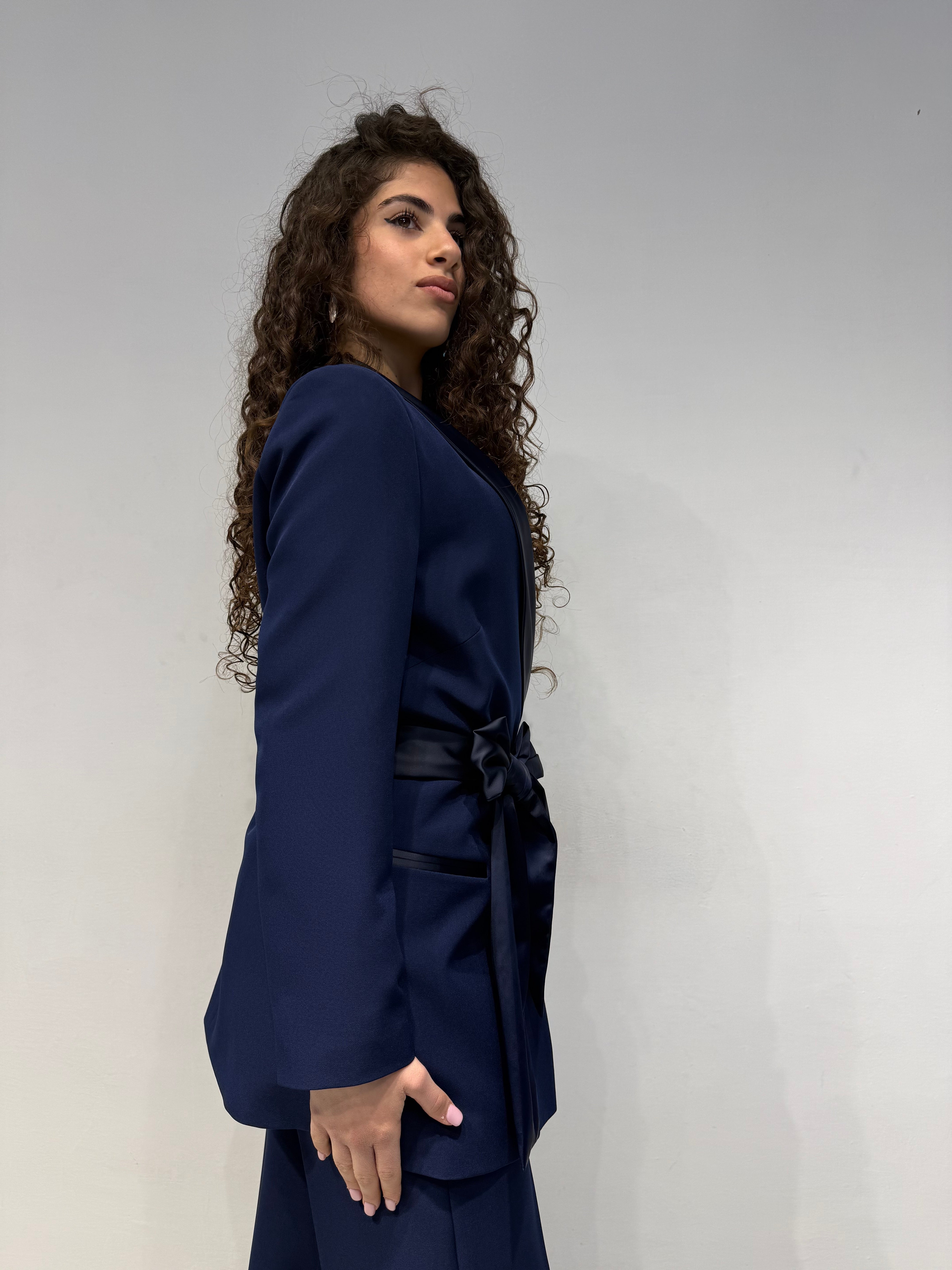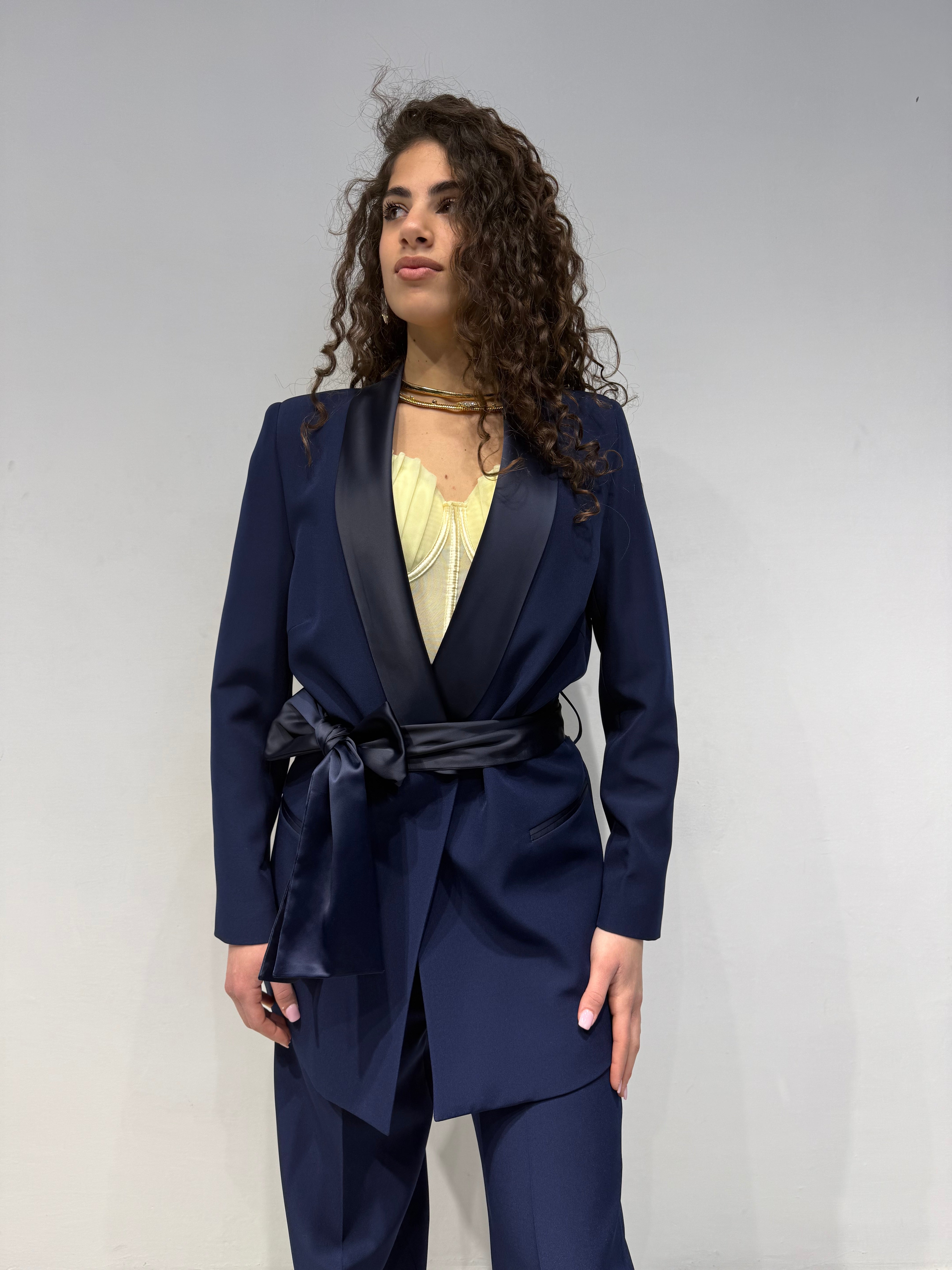 • Giacca con cinturone in raso